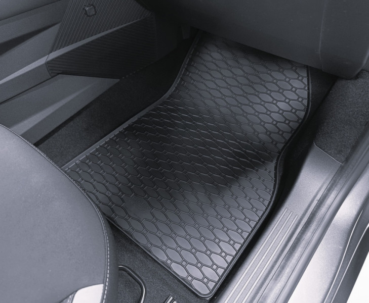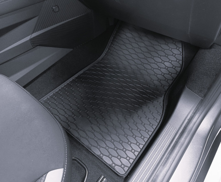 Πατάκια δαπέδου Rigum, κατασκευασμένα από υψηλής ποιότητας άοσμο ανθεκτικό καουτσούκ, φιλικό προς το περιβάλλον. Αντιολισθητικά και πολύ εύκολα στο καθάρισμα. Το χείλος που διαθέτουν (περίπου 1cm) και η ειδικά διαμορφωμένη κυψελωτή επιφάνεια συγκρατούν νερά, λάσπες, χώματα και χιόνι, διατηρώντας καθαρό το εσωτερικό του αυτοκινήτου. Διαθέτουν άψογη εφαρμογή.