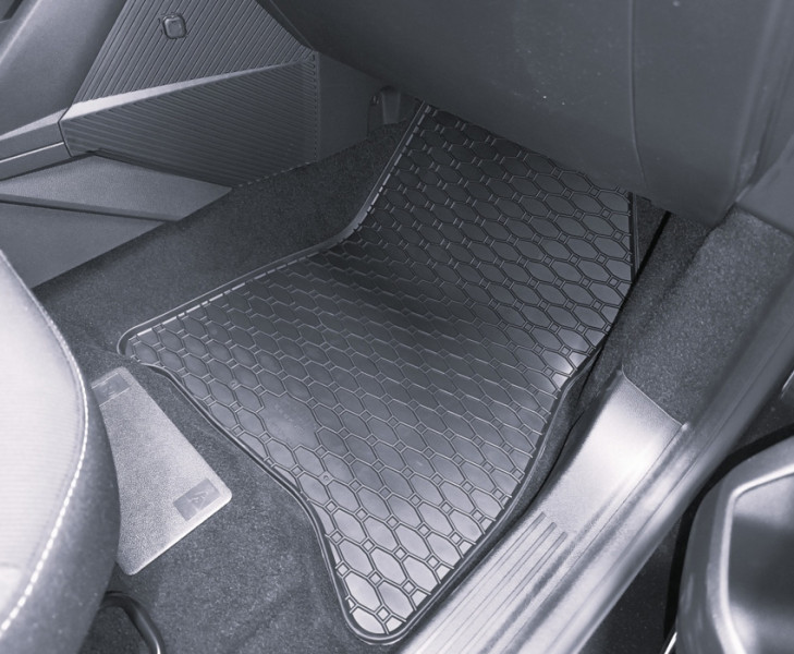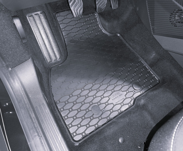 Πατάκια δαπέδου Rigum, κατασκευασμένα από υψηλής ποιότητας άοσμο ανθεκτικό καουτσούκ, φιλικό προς το περιβάλλον. Αντιολισθητικά και πολύ εύκολα στο καθάρισμα. Το χείλος που διαθέτουν (περίπου 1cm) και η ειδικά διαμορφωμένη κυψελωτή επιφάνεια συγκρατούν νερά, λάσπες, χώματα και χιόνι, διατηρώντας καθαρό το εσωτερικό του αυτοκινήτου. Διαθέτουν άψογη εφαρμογή.