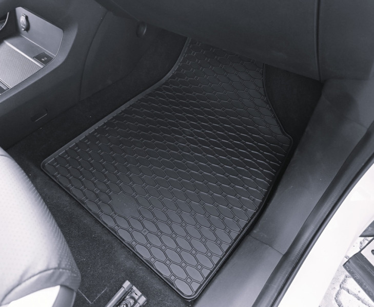 Πατάκια δαπέδου Rigum, κατασκευασμένα από υψηλής ποιότητας άοσμο ανθεκτικό καουτσούκ, φιλικό προς το περιβάλλον. Αντιολισθητικά και πολύ εύκολα στο καθάρισμα. Το χείλος που διαθέτουν (περίπου 1cm) και η ειδικά διαμορφωμένη κυψελωτή επιφάνεια συγκρατούν νερά, λάσπες, χώματα και χιόνι, διατηρώντας καθαρό το εσωτερικό του αυτοκινήτου. Διαθέτουν άψογη εφαρμογή.