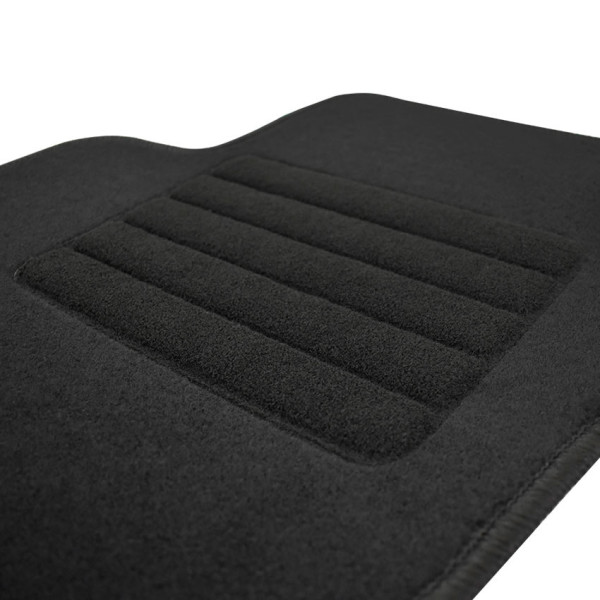Πατάκια δαπέδου μοκέτας ποιότητας Standard της εταιρείας Rigum σε μαύρο χρώμα. Διαθέτουν clips σταθεροποίησης, ενισχυμένο πάτημα στο πατάκι του οδηγού και αντιολισθητικό υπόστρωμα.