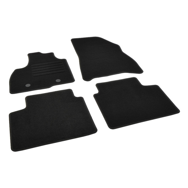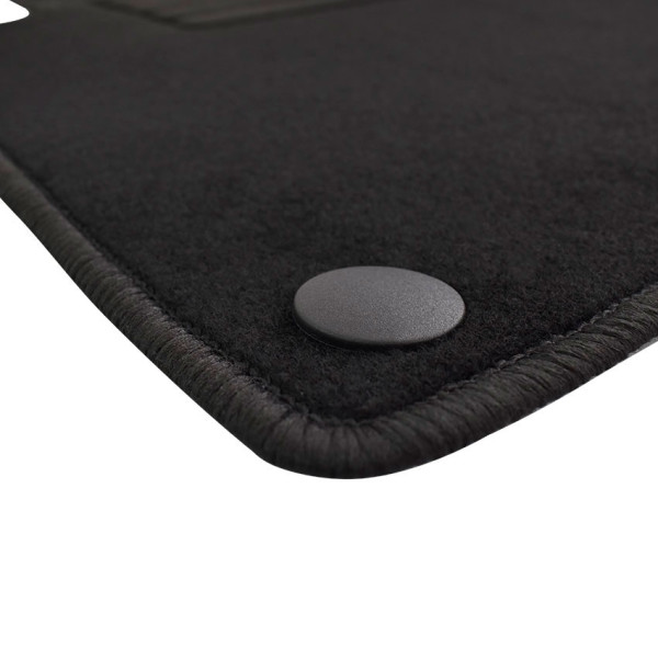 Πατάκια δαπέδου μοκέτας ποιότητας Standard της εταιρείας Rigum σε μαύρο χρώμα. Διαθέτουν clips σταθεροποίησης, ενισχυμένο πάτημα στο πατάκι του οδηγού και αντιολισθητικό υπόστρωμα.
