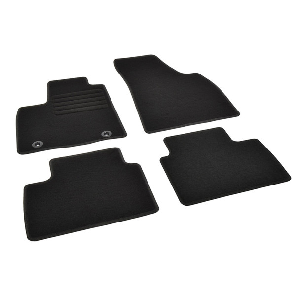 Πατάκια δαπέδου μοκέτας ποιότητας Standard της εταιρείας Rigum σε μαύρο χρώμα. Διαθέτουν clips σταθεροποίησης, ενισχυμένο πάτημα στο πατάκι του οδηγού και αντιολισθητικό υπόστρωμα.