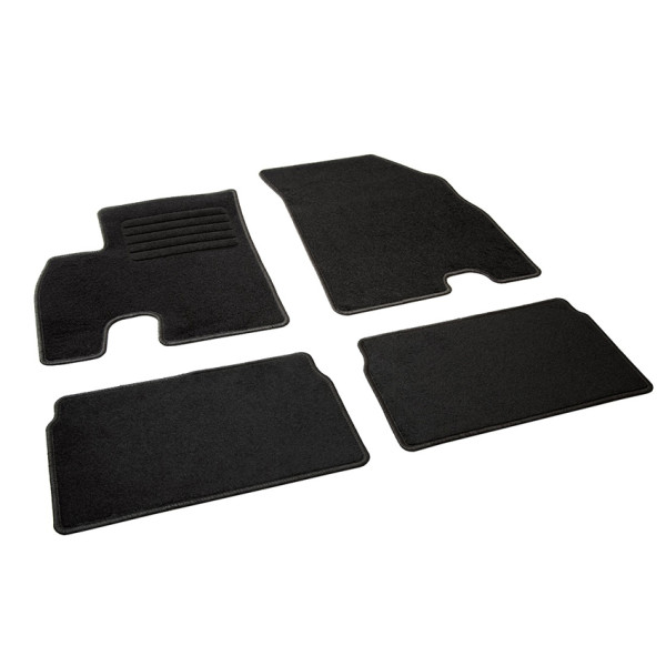 Πατάκια δαπέδου μοκέτας ποιότητας Standard της εταιρείας Rigum σε μαύρο χρώμα. Διαθέτουν clips σταθεροποίησης, ενισχυμένο πάτημα στο πατάκι του οδηγού και αντιολισθητικό υπόστρωμα.
