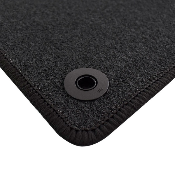 Πατάκια δαπέδου μοκέτας ποιότητας Standard της εταιρείας Rigum σε μαύρο χρώμα. Διαθέτουν clips σταθεροποίησης, ενισχυμένο πάτημα στο πατάκι του οδηγού και αντιολισθητικό υπόστρωμα.