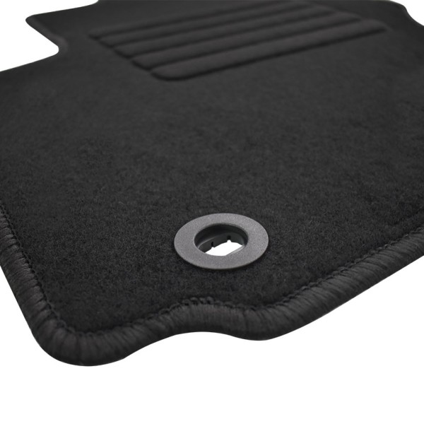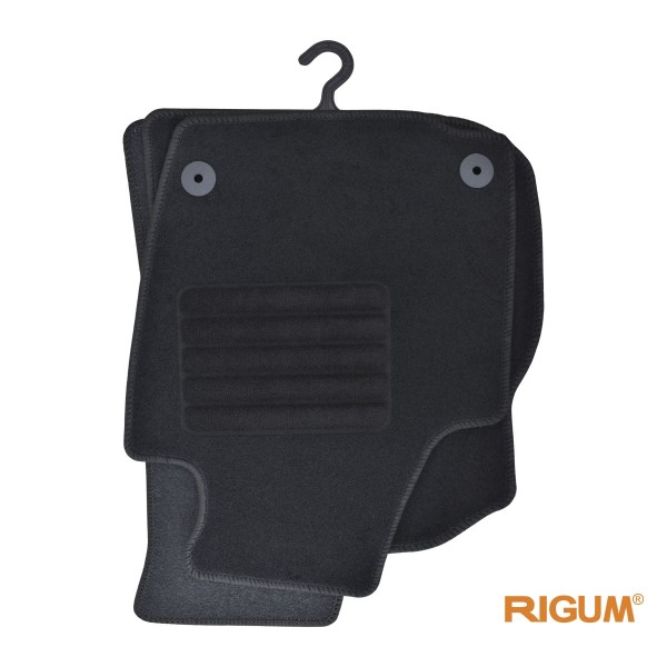 Πατάκια δαπέδου μοκέτας ποιότητας Standard της εταιρείας Rigum σε μαύρο χρώμα. Διαθέτουν clips σταθεροποίησης, αντιολισθητικό υπόστρωμα και ενισχυμένο πάτημα στο πατάκι του οδηγού.
