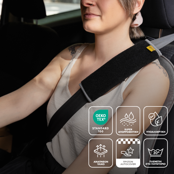 Μαξιλαράκια για Ζώνες Ασφαλείας - Μαύρη Πετσέτα - Γκρι Ρέλι