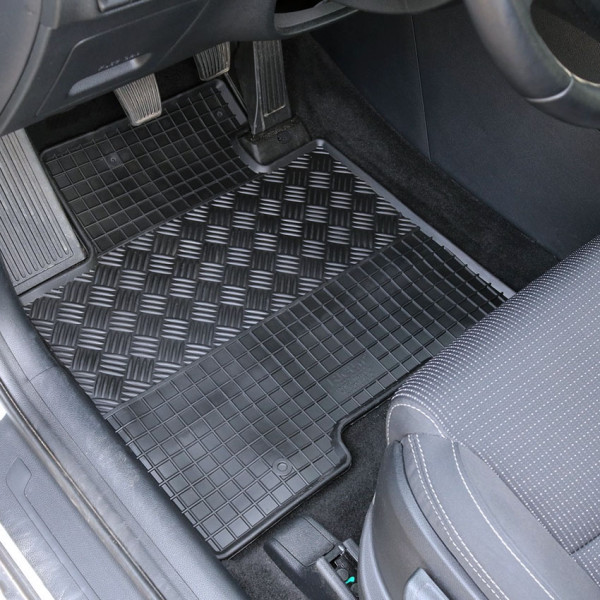 Πατάκια δαπέδου Rigum, κατασκευασμένα από υψηλής ποιότητας άοσμο ανθεκτικό καουτσούκ, φιλικό προς το περιβάλλον. Αντιολισθητικά και πολύ εύκολα στο καθάρισμα. Το χείλος που διαθέτουν (περίπου 1cm) και η ειδικά διαμορφωμένη κυψελωτή επιφάνεια συγκρατούν νερά, λάσπες, χώματα και χιόνι, διατηρώντας καθαρό το εσωτερικό του αυτοκινήτου. Διαθέτουν άψογη εφαρμογή.